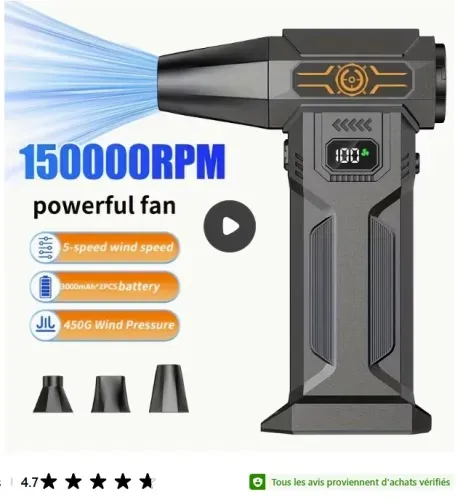 1pc JKUOO Souffleur Turbo Sans Fil Portable